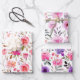 Beau ensemble de 3 feuilles d'emballage dans un design floral d'aquarelle féminine. Fleurs roses, fleurs lilas et feuilles florales violettes et roses, emballage cadeau parfait pour la douche nuptiale, anniversaire, baby shower ou toute occasion spéciale tout au long de l'année.