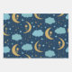 Feuille De Papier Cadeau Lune Boho Dorée Avec Fleurs Nuages