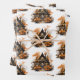 Envelopper les feuilles de papier avec un cool et l'illustration éffrayante d'une maison hantée en bois. Entouré de grands citrouilles oranges et d'arbres aux feuilles oranges. Les fenêtres oranges ajoutent une belle lueur. Amusant design Halloween.