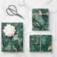 Beau papier d'emballage vert émeraude et marbre doré dans le style moderne qui éveille la joie et est parfait pour de nombreuses occasions spéciales. Trois conceptions différentes pour un emballage cadeau unique.