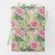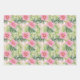 Feuille De Papier Cadeau Mariage Fleurs Roses Tropicales Rayures Vertes