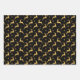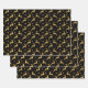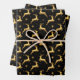 Feuille De Papier Cadeau Metallic Gold and Black Reindeer and Stars