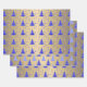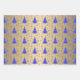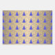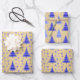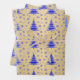 Ce design unique, moderne, dessiné à la main, mignon présente des arbres de Noël en bleu et des couleurs perwinkle sur arrière - plan d'or faux jaune. Ce papier cadeau d'emballage est un excellent complément à vos fêtes d'hiver