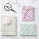 Fun ensemble de papier d'emballage coloré. Avec de mignons tartans en vichy plaid, rayures et motifs de coeur dans les couleurs vert menthe clair, jaune pâle et rose pastel. Design hipster original, branché, moderne et fantaisiste pour les amoureux du Printemps, de Pâques et de la Saint Valentin. Cet emballage cadeau original, classe, chic, élégant et parfait mettra un sourire sur les visages des amis et de la famille lors du déballage de leurs fêtes de Pâques ou de la Saint-Valentin.