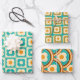 Feuille De Papier Cadeau Modèle Floral Rétro Turquoise, Crème, Orange