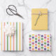 Add a cheerful touch to any gift with this colorful trio of coordinating wrapping paper designs. Featuring a playful multicolor polka dot pattern, a clean rainbow stripe print, and a modern yellow geometric design, this set brings a bright, happy style to birthdays, spring celebrations, kids’ parties, and everyday gifting. The mix of bold colors and simple patterns makes each sheet fun, versatile, and easy to pair with any ribbon or bow. Perfect for wrapping presents, party favors, craft prints, or adding a fresh pop of color to your gift table.