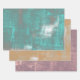 Feuilles de papier d'enveloppement abstrait rustique rayées et frottées, modernes. Couleurs turquoise, grise, orange, mauve, rose et blanche.