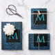 Feuille De Papier Cadeau Monogramme abstrait bleu brillant métallique