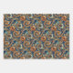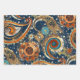 Feuille De Papier Cadeau Motif Celestial Paisley Marine Bleu, Orange, Or