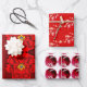 3 motifs floraux chinois : Grandes pivoines rouges stylisées, fleurs de cerisiers et fleurs de cerisiers blancs en forme de violet. Conception sur l'emballage de feuille de papier jeu de 3. Carte de voeux, invitation, produits artisanaux et plus encore... Parfait pour un Nouvel An chinois moderne et intemporel.