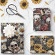 Feuille De Papier Cadeau Motif de crânes et de fleurs gothiques