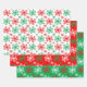 Il s'agit d'un ensemble amusant de 3 papiers d'emballage de Noël avec chacun un arrière - plan de couleur différent (blanc, rouge et vert). Les papiers d'emballage comportent un motif de flocons de neige aux couleurs rouge, blanc et vert.