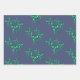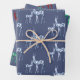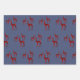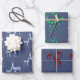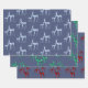 Des rennes de cristal d'aquarelle peints à la main en trois variétés de pierres gemmes - rubis, émeraude et topaz bleu - décorent ce papier d'emballage de Noël d'un style unique en bleu du comté