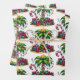 Envelopper les feuilles de papier avec une image de vacances saisonnière. Un palmier tropical orné de lumières festives surmonté d'une étoile. Un sucre de canne géant rouge et blanc qui sort du sable. Cadeaux de Noël sous l'arbre. Whimsical et amusant.
