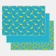 Un ensemble de trois feuilles d'enveloppes-cadeaux coordonnées à motifs dinosaures.