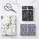 Feuilles de papier d'emballage trio de fleurs aquarelles vert violet noir élégantes de Studio Posies. Conception de Jenn Steffen, Jenn's Emporium.