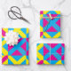 Feuille De Papier Cadeau Motif géométrique Carré bleu jaune rose