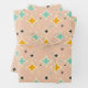 Motif géométrique rétro avec des losanges en forme d'étoile sarcelle, orange et noir sur fond pêche. Le design donne une impression ludique et vintage.