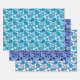 Papier enveloppant dans un orné, dentelle, cachemire motif dans les tons bleu ciel clair à bleu cobalt profond sur un arrière - plan bleu glace doux, les tons bleu profond et turquoise, accentué de blanc, sur un arrière - plan bleu cobalt, et bleu ciel clair à bleu cobalt profond et aqua sur un arrière - plan blanc