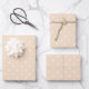 Élevez votre cadeau avec ce chef-d'oeuvre en papier d'emballage. Avec un arrière - plan chic en lin rose pâle orné d'un agencement symétrique de pois blancs purs, c'est une célébration harmonieuse du style et de la simplicité.