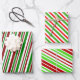 Ce design ludique et festif présente une variété de motifs rayés aux couleurs rouge, blanc et vert. Le papier enveloppant ainsi peut être utilisé pour envelopper des cadeaux ou des cadeaux donnés à Noël.