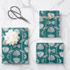 Feuille De Papier Cadeau Motif Shell Art Déco Turquoise et argenté