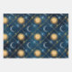 Feuille De Papier Cadeau Motif soleil et lune sur bleu
