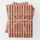 Feuille De Papier Cadeau Motifs en détresse sur rayures rouges et ivoire