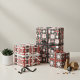 Ensemble de trois feuilles de papier d'emballage avec différents motifs. Chaque feuille est composée d'un motif géométrique en mosaïque transparente, rouge foncé, gris foncé et blanc.