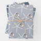 Starfish et motif ornement feuilles d'emballage de Noël. Feuilles de gris-bleu, dans des tons clairs, moyens et sombres, chacune contient un motif d'étoiles de mer blanches et un blanc argenté. Le design parfait pour Noël avec un thème côtier.