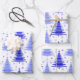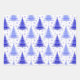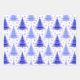 Ce design unique, moderne, dessiné à la main, mignon présente des arbres de Noël en bleu et des couleurs perwinkle sur arrière - plan blanc. Ce papier cadeau d'emballage est un excellent complément à votre fête d'hiver.