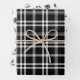 Ces draps d'emballage classiques sont un ensemble de trois modèles noirs et blancs gratuits pour la saison des fêtes. L'une présente un motif classique en bâtonnets de tartan noir et blanc, l'autre présente des flocons de neige noirs contre un arrière - plan blanc et l'autre un motif floral noir sifflant.