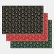 Noir de Noël, or, rouge et vert pin foncé cloches mignonnes motif élégante Feuilles de papier enveloppant. Idéal pour Noël, vacances et anniversaires couleurs assorties