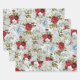 Feuille De Papier Cadeau Noël Rouge & Dusty Bleu Roses & Holly