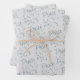Ensemble de 3 feuilles de papier de Noël enveloppant avec le libellé de noël orné. Les trois conceptions sont l'amour et la joie de la paix, la joie du monde et manger boire et être joyeux. Design de style typographique élégant avec des lettres manuscrites décontractées et des lettres d'aquarelle décorées de verdure hivernale dans les tons bleu et vert.