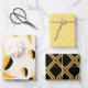 Un trio gagnant de papier d'emballage. Art déco superbe en noir cuivre/or, jaune délicat et large pois, et aquarelle contemporaine éclaboussant en or, noir, blanc. Les trois se complètent pour faire un superbe paquet.