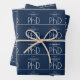 Envelopper des feuilles de papier pour une soirée de doctorat avec un design bleu et blanc. Cet article fait partie d'une collection de fête de remise de diplômes qui comprend une invitation, faire-part photo, serviettes en papier, cartes de séjour, et plus encore. Customisez ces articles, ajoutez-les à votre panier et célébrez cette réalisation majeure. Nom Blue PhD Graduation Party Enveloppement Feuilles papier Conception de jour férié | ©Melissa Patton - Designer
