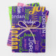 Feuille De Papier Cadeau Nom répété Purple Rose Chartreuse Vert