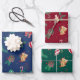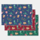Nostalgique peint à la main avec Nounours, Baubles, Holly, Fir Branches, Bows et Sucres de canne. Couleurs traditionnelles et festives. Ensemble de trois feuilles en bleu, vert, rouge.