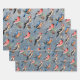 Feuille De Papier Cadeau Oiseau bleu Bullfinch Première neige hivernale