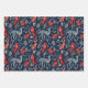 Feuille De Papier Cadeau Oiseaux Botanique Bois Animaux Bleu Rouge Motif