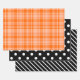 Feuille De Papier Cadeau Orange Plaid & Black & White