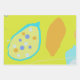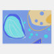 This Wrapping Paper Flat Sheet Set of 3 features three images that have flat backgrounds in general, blue on the first paper and the third one, yellow on the second. Their inner forms are organic some of them and refer to fruits -reminiscent of lemons above all-, and abstract others. Their general colors are turquoise, yellow, blue, white and orange with many polka dots playing around.