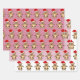 Feuille De Papier Cadeau Ours en peluche mignon avec chapeau de Noël rose