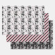 Feuilles de papier d'emballage à thème stylisé de cheveux comportant deux motifs différents: une avec de mignons outils de coiffure en noir et blanc aux coeurs roses; et une bande diagonale en rose, noir et blanc.