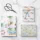 Ajoutez des vibes de plage tropicales à votre emballage cadeau de vacances avec ces feuilles de papier d'emballage de Noël côtier. L'ensemble comprend 3 motifs coordonnateurs : des scènes de plage de palmiers tropicaux, de mignons flamants roses dans des chapeaux santa, et de minuscules étoiles de mer parsemées de parties scintillant.
