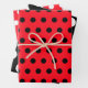 Papier d'emballage Polkadot avec des à petits pois rouges, noirs et blancs.