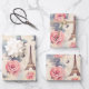 Feuille De Papier Cadeau Papillon Tour Eiffel et Motif Rose