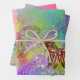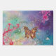 Feuille De Papier Cadeau PAPILLONS, ROSE BLEU VIOLET VERT PAILETTES Floral