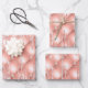 Feuilles d'emballage élégantes, classiques, glamour et féminines. Un motif rose en arlequin doré décoré avec des gouttes de parties scintillant en or rose et rose, la peinture goutte à goutte. Parfait pour les anniversaires et les cadeaux de Noël.